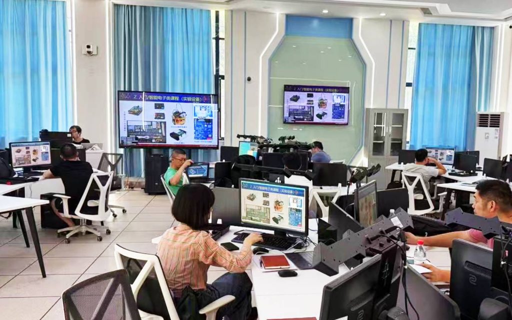培训期间,风标教育工程师刘工深入剖析物联网开发经典案例,并指导教师动手实践,现场解决技术难题。华南理工大学李教授则结合多年教学与科研经验,分享AI算法在工业场景中的创新应用,参训教师纷纷表示“案例贴近实际、方法可复制性强”。为了更好地帮助教师突破传统教学模式,提升课堂实效性,培训班邀请到深圳市幻尔科技有限公司为教师们进行中国机器人大赛交流,分享大赛案例。
