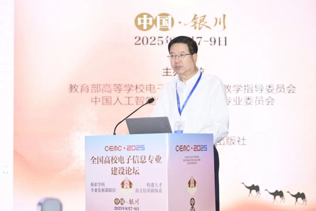 教育部高等学校电子信息类专业教学指导委员会联合中国人工智能学会智能融合专业委员会主办,宁夏大学承办的“全国高校电子信息专业建设论坛”2025年8月7-9日在银川市成功召开。本届论坛主题为“探索学科专业发展新路径,构建人才自主培养新体系”,邀请电子信息学科领域专家学者作主题报告,共谋电子信息类专业建设与人才培养新路径。来自全国200余所高校、20余家知名企业,400余位电子信息相关专业院校领导、专业负责人、骨干教师与企业代表参加本届论坛。