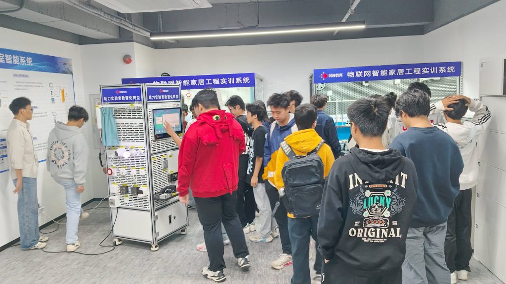 近日,广州理工学院智能制造与电气工程学院900多名学子走进风标教育,在学院与风标教育的联合组织下,开启了一场兼具知识性与实践性的见习之旅。本次活动风标教育工程师充分准备热情接待,带领学子们走进风标教育展厅,沉浸式感受智能制造领域的前沿技术与应用场景。